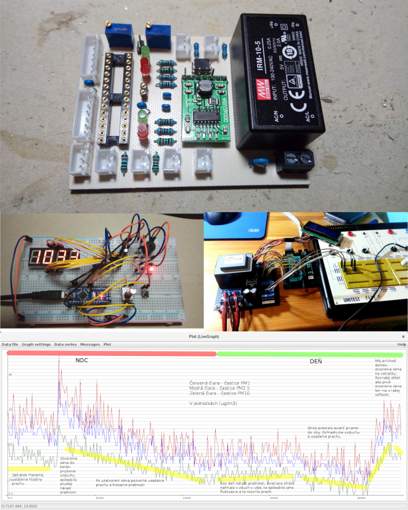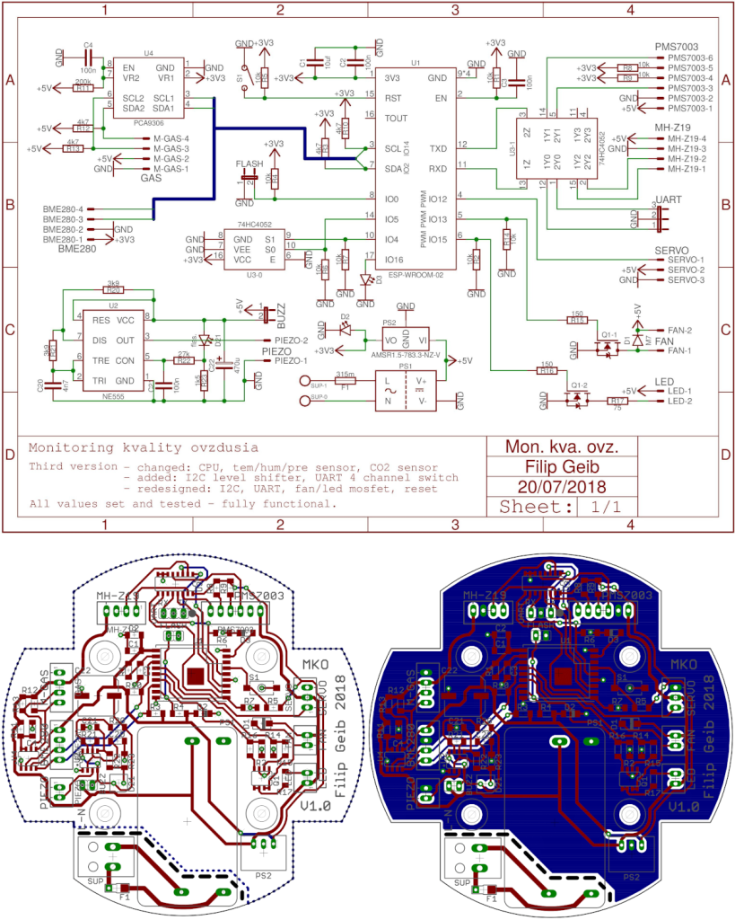 I won a national environment-developing award with an IoT network of air quality monitoring devices. Each device is wirelessly connected to a server and constantly measures and sends a wide set of parameters. They include basic meteorological properties, three types of dust particles, and a set of chemicals such as CO2 or NO2. All the data is then processed and visualized on a website. This project included system design in KiCad, 3D design in FreeCad, software development in C/C++, and website front end using PHP and JavaScript.