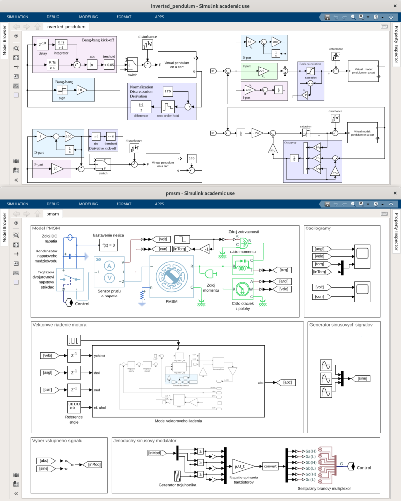 We simulated multi-domain systems and designed controllers in various classes using MATLAB and Simulink. These included a robust control of an inverted pendulum or a vector control of a PMSM motor.