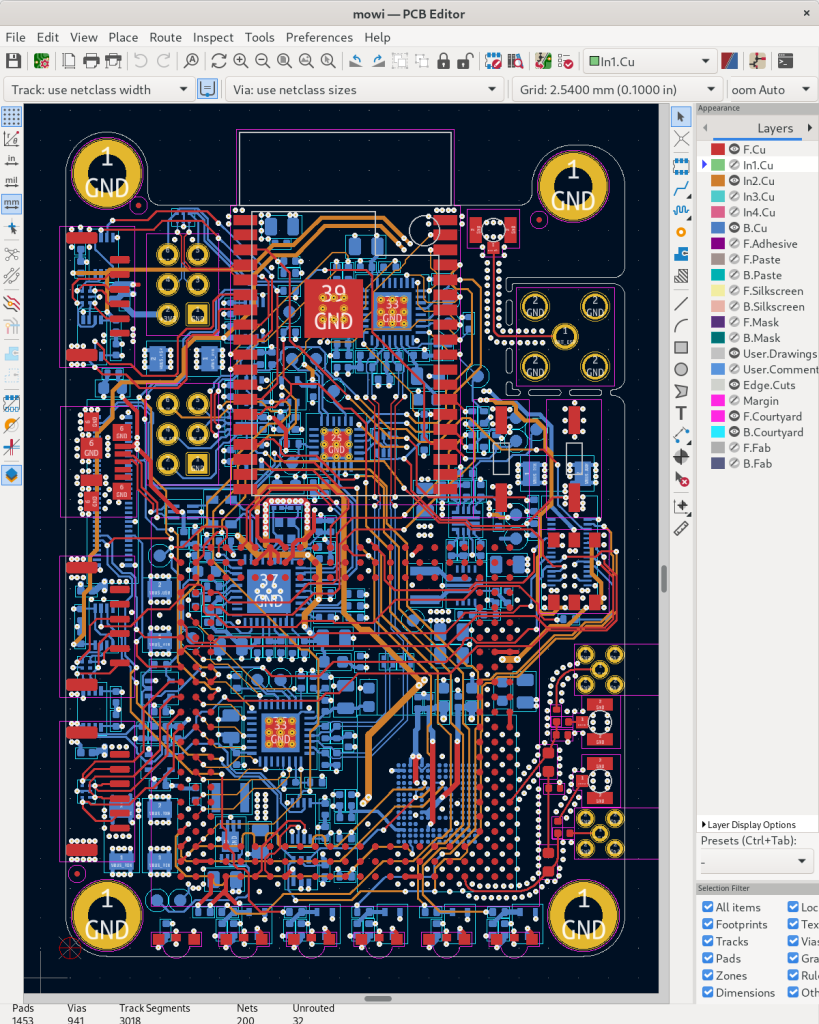 Mowi is an HW board integrating Septentrio’s GNSS receiver with an ESP32 WiFi module. This interconnection is accommodated by an onboard 802.3 Ethernet link providing full wireless connectivity to the GNSS module. Mowi’s design also features a high-speed USB hub, an eMMC memory, robust power management, an FTDI driver, and multiple ESSD-protected peripherals. This project included system design, scheme and PCB design in KiCad, coordination of manufacturing, and delivering Ethernet drivers and example scripts in C.