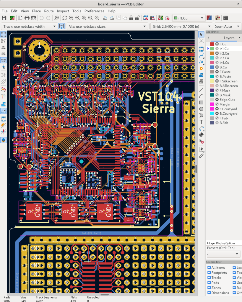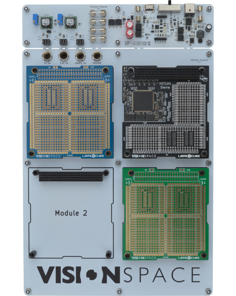 VST104 is a family of HW boards designed for PC104 format CubeSats. The main board is a single onboard computer featuring a powerful STM32 microcontroller, redundant flash and FRAM memories, separate data bus insulators, and power management. The auxiliary board is a FlatSat testbench with USB-C power delivery capabilities. I worked on the system, scheme, and PCB design in KiCad and a manual assembly of fine-pitched components. This project, extended with radiation testing, became my award-winning bachelor thesis.